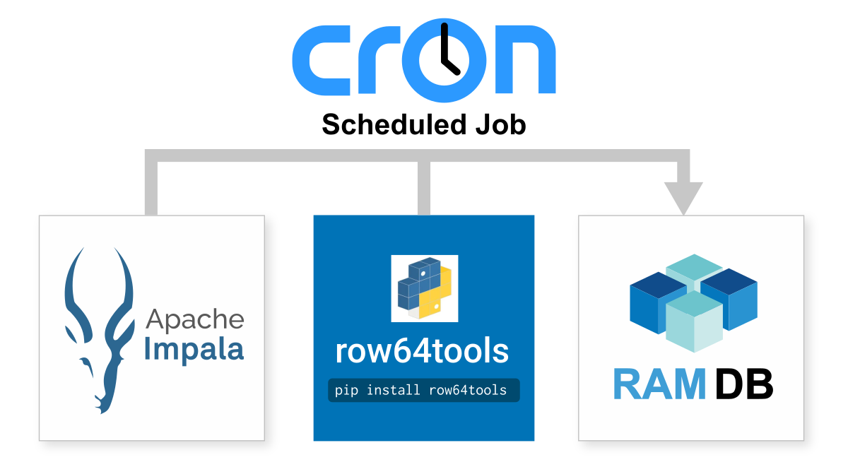 Apache Impala is an open source, native analytic database for Apache Hadoop, it's designed for massively-distributed, massively-parallel SQL queries. Apache Impala integrates easily with Row64 by wiring to Row64 RamDb through Python.
