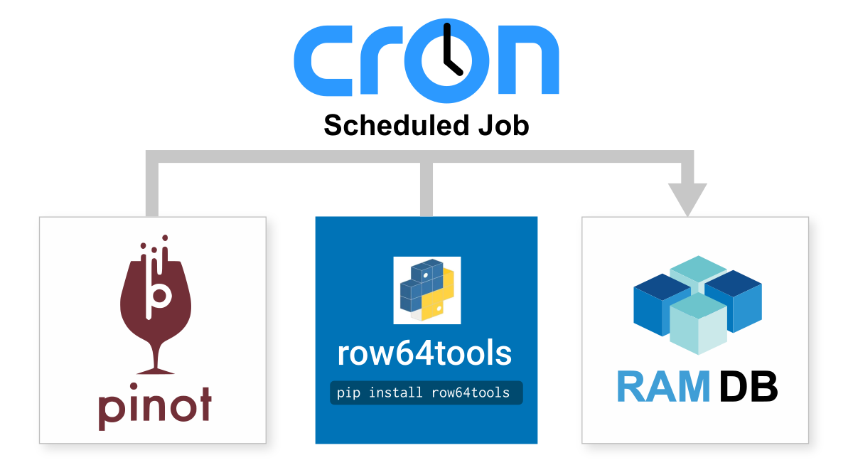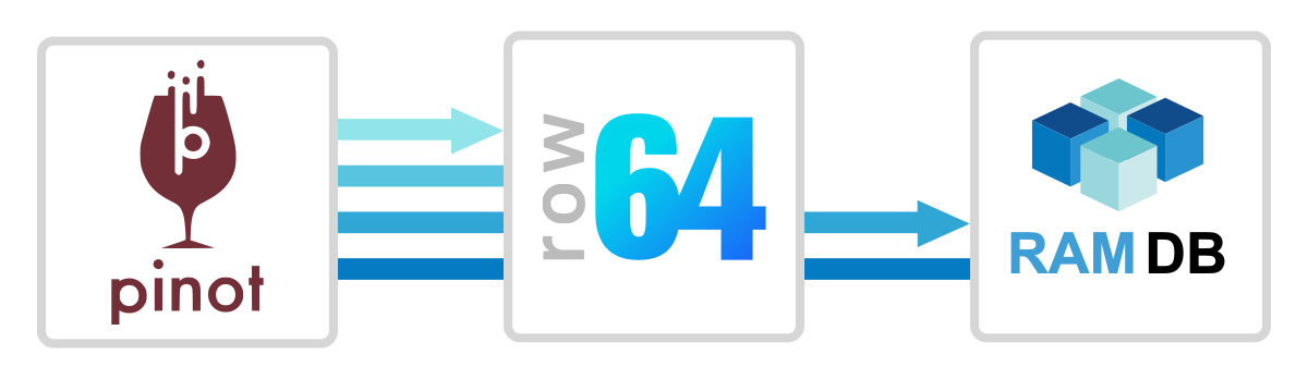 Apache Pinot is a real-time distributed OLAP datastore designed at LinkedIn for ultra low-latency analytics with extremely high throughput. Apache Pinot integrates easily with Row64 by wiring to Row64 RamDb through Python.