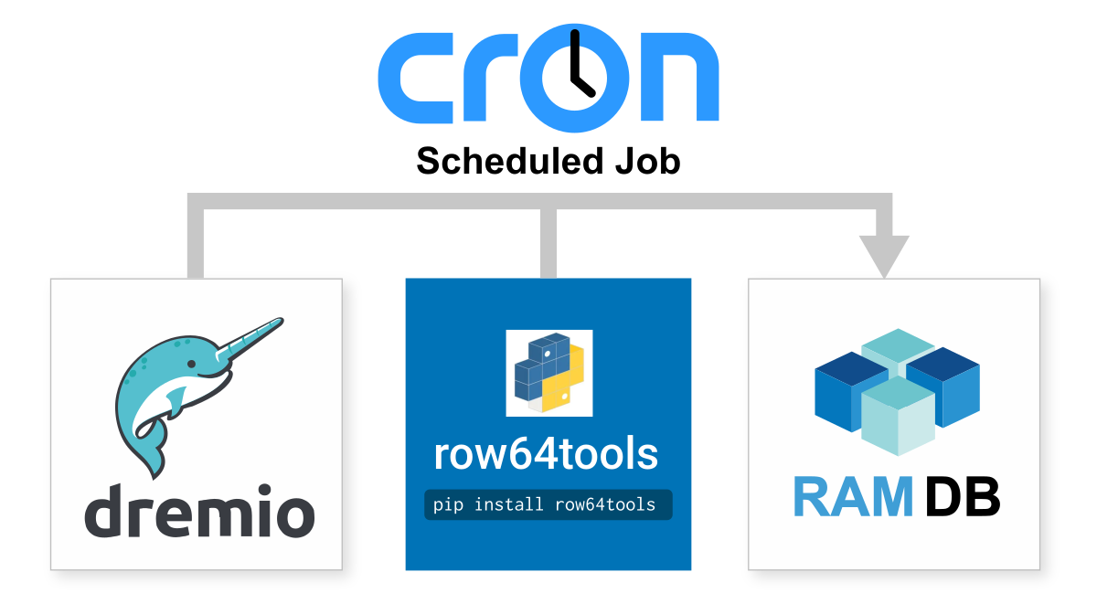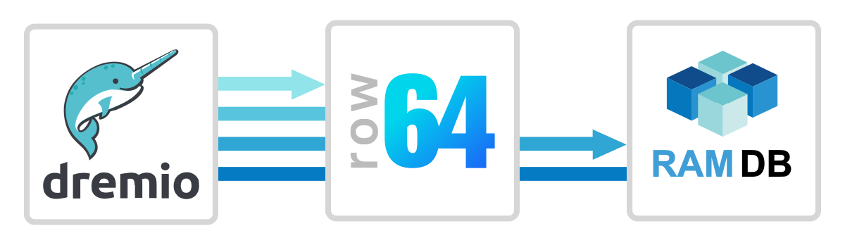 Dremio is a data lake engine that enables live, interactive queries to data lakes. It is designed for self-service: creation, management, and manipulation of databases. Dremio integrates easily with Row64 by wiring to Row64 RamDb through Python.