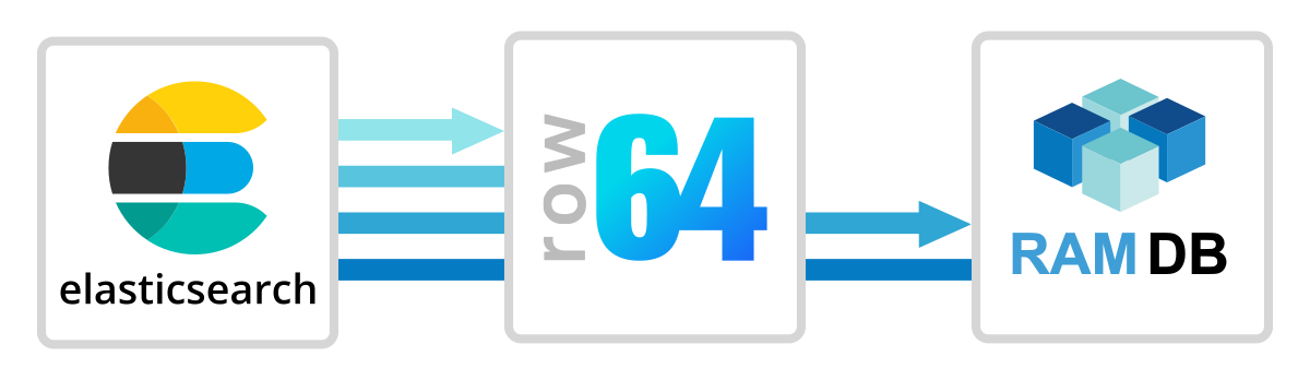 The basic connection process is to use row64tools to push updates from ElasticSearch to Row64. An overview is available here: