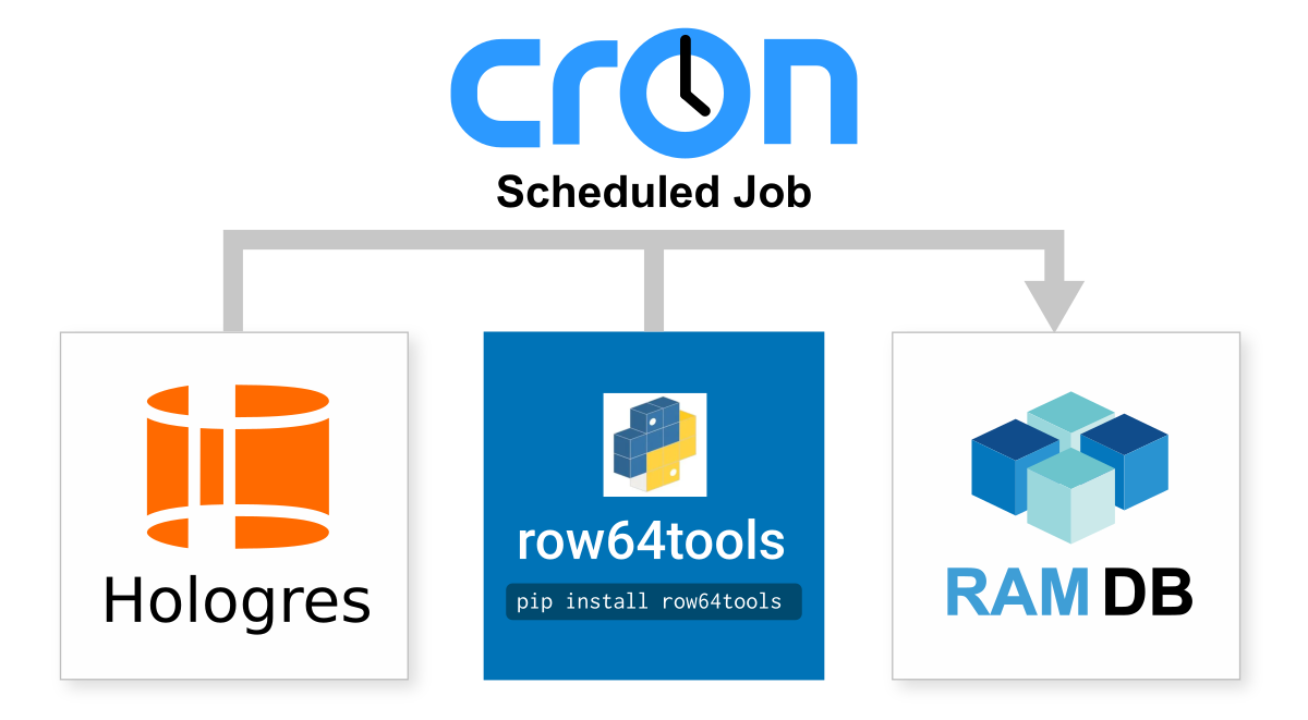 Hologres is a unified real-time data warehousing service developed by Alibaba Cloud. It is designed for analyzing large amounts of data and collecting real-time events. Hologres integrates easily with Row64 by wiring to Row64 RamDb through Python.