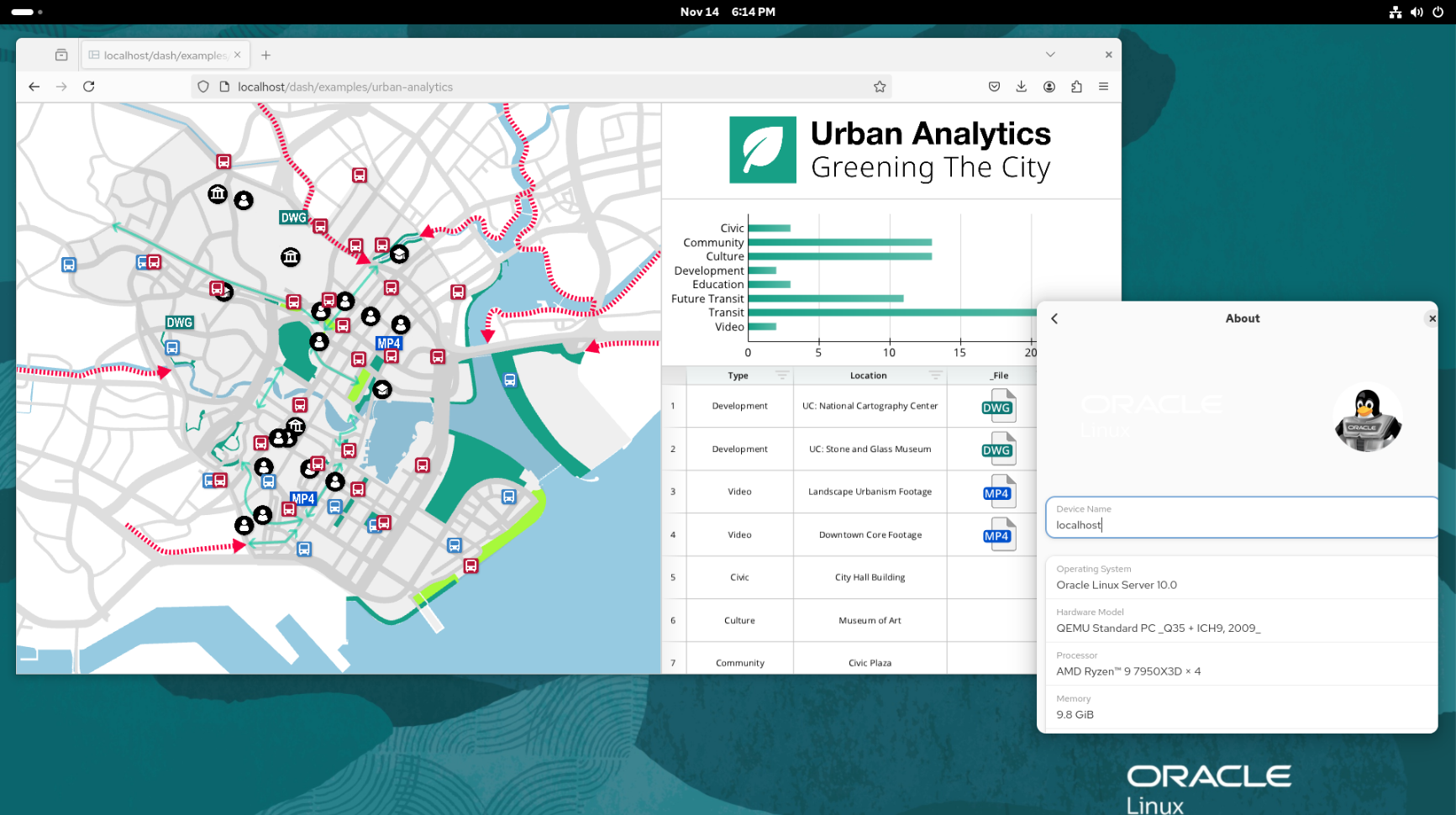 Since this example uses both Oracle Linux and Ubuntu, you might have the question: Why not have both the database and the dashboard run Oracle Linux? The answer is that you can; we've tested it, and it works well.