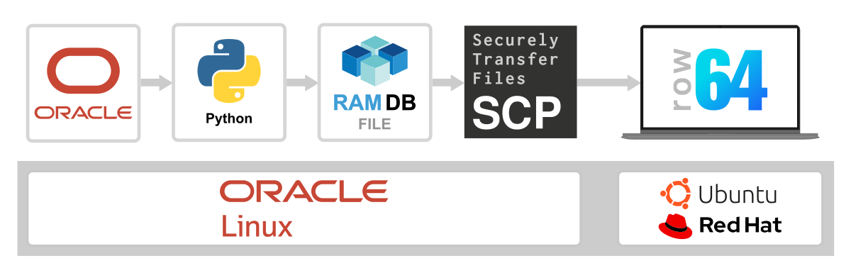 Our standard and simplest setup, shown in this example, is to run the Oracle Database in Oracle Linux, and use SCP to securely transfer the file to the dashboard on Ubuntu.