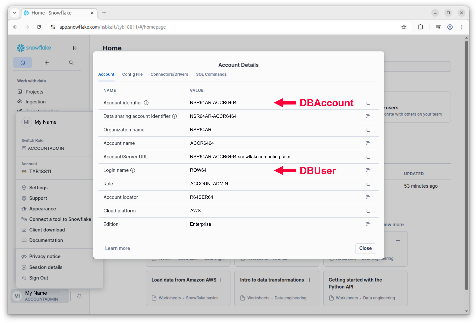 If you need more help getting credentials for connecting Python to Snowflake, here's a link with additional information: