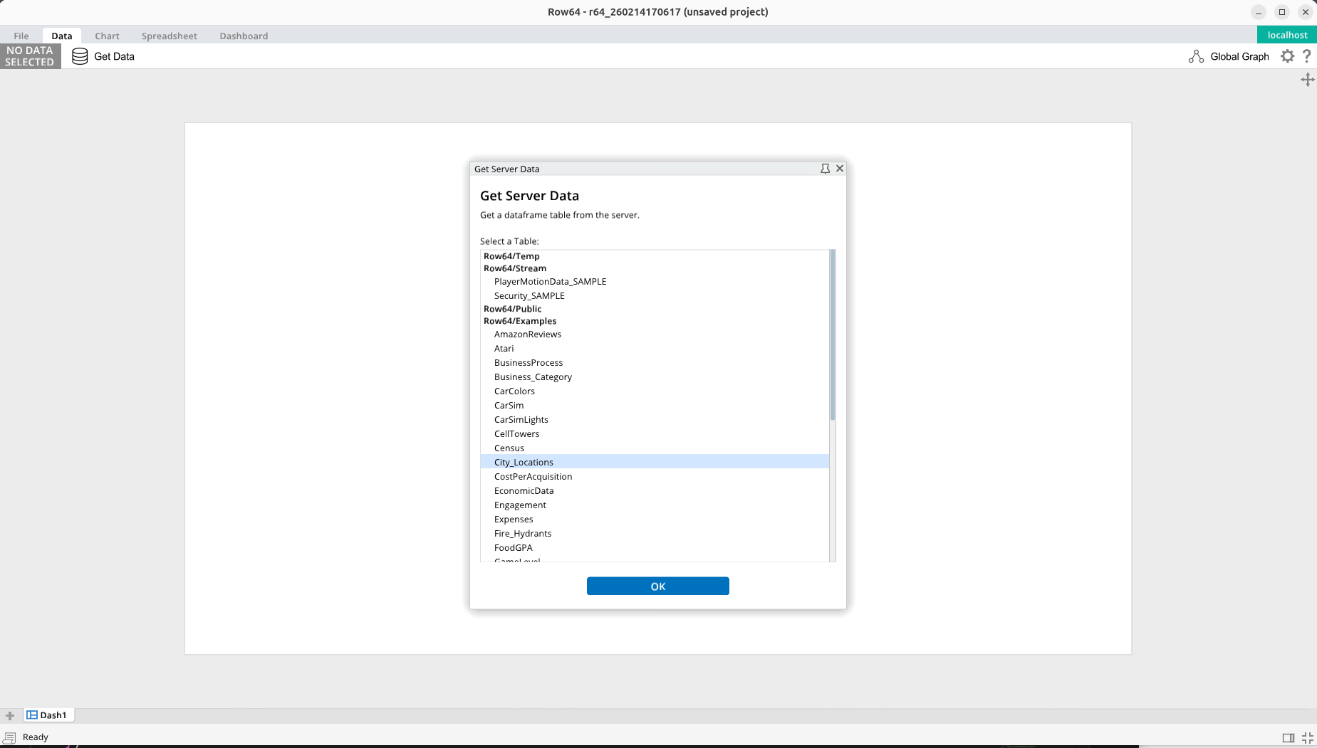 To get started, you must first have a dashboard project open in Row64 Studio.