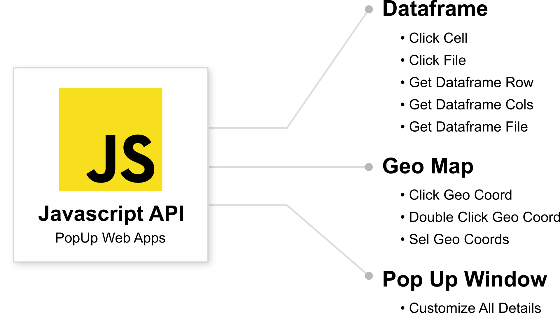 For example, the map pane of the Urban Analytics example supports different JavaScript options (see next image) than the file pane as seen in the previous image.