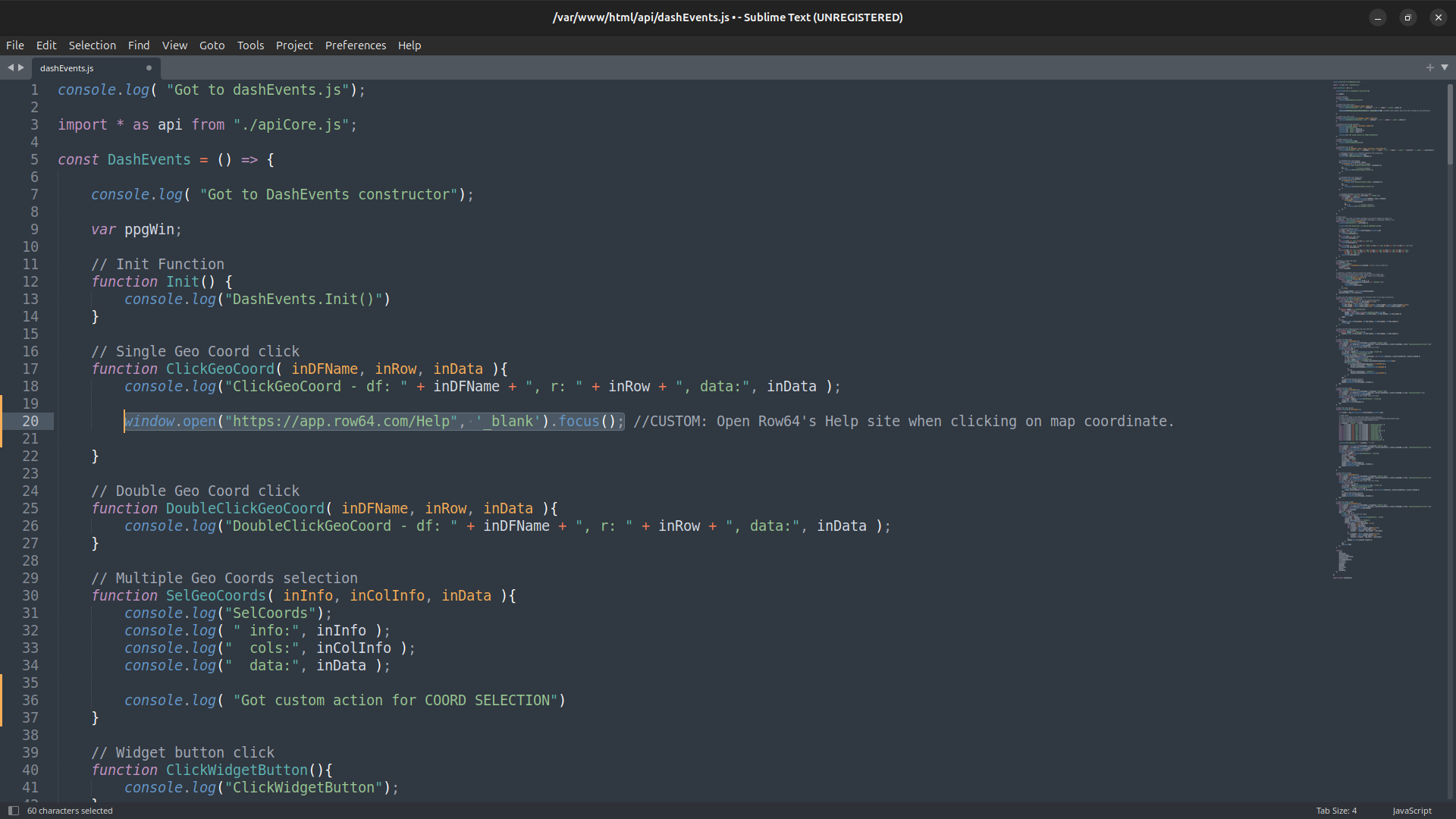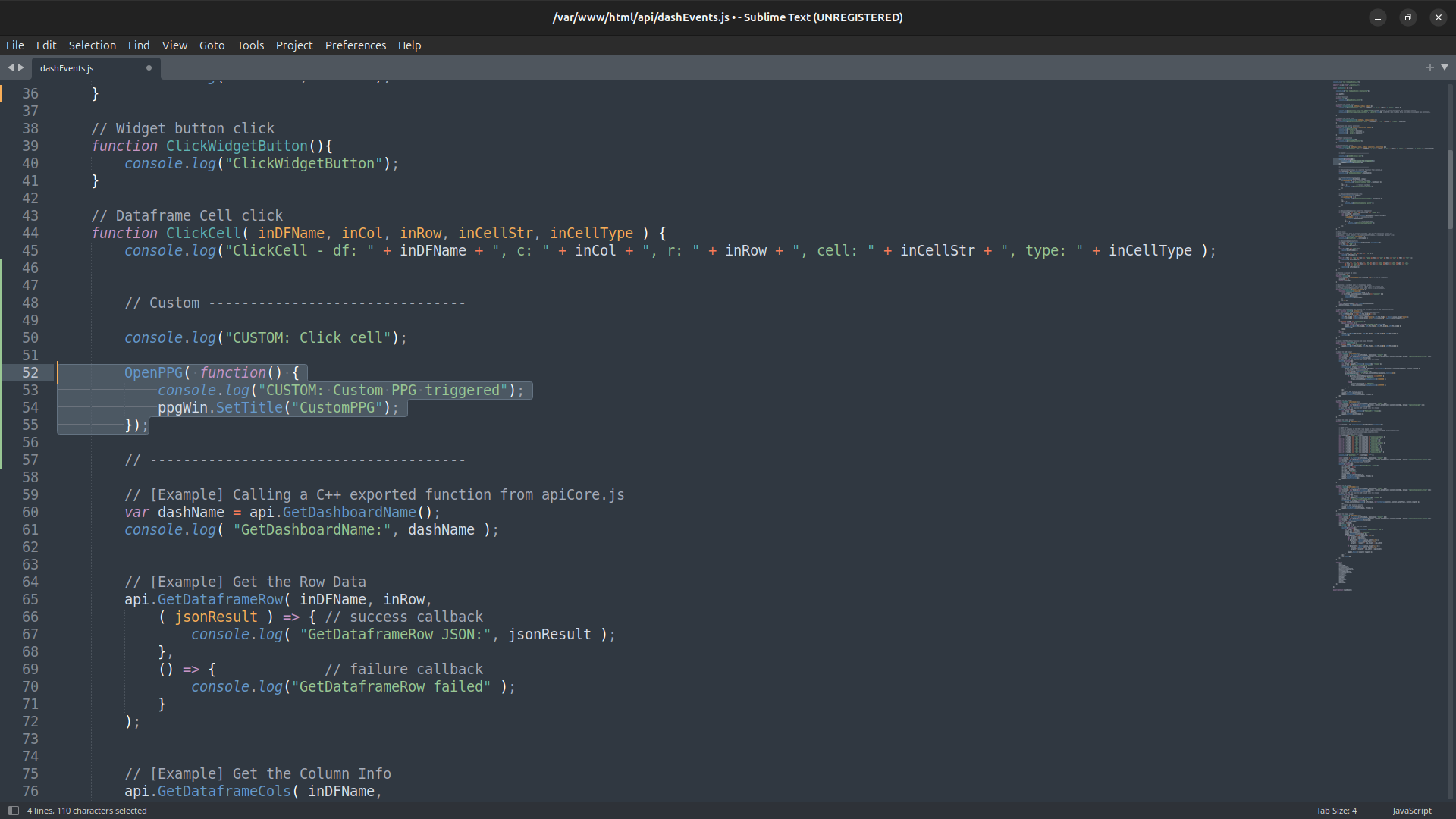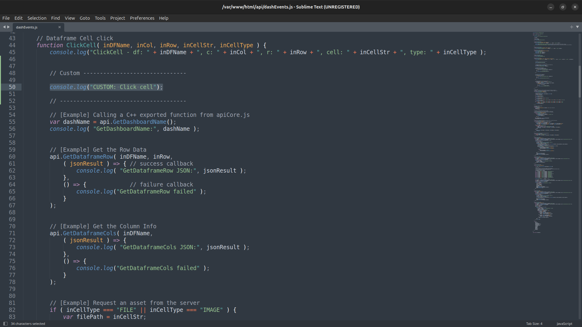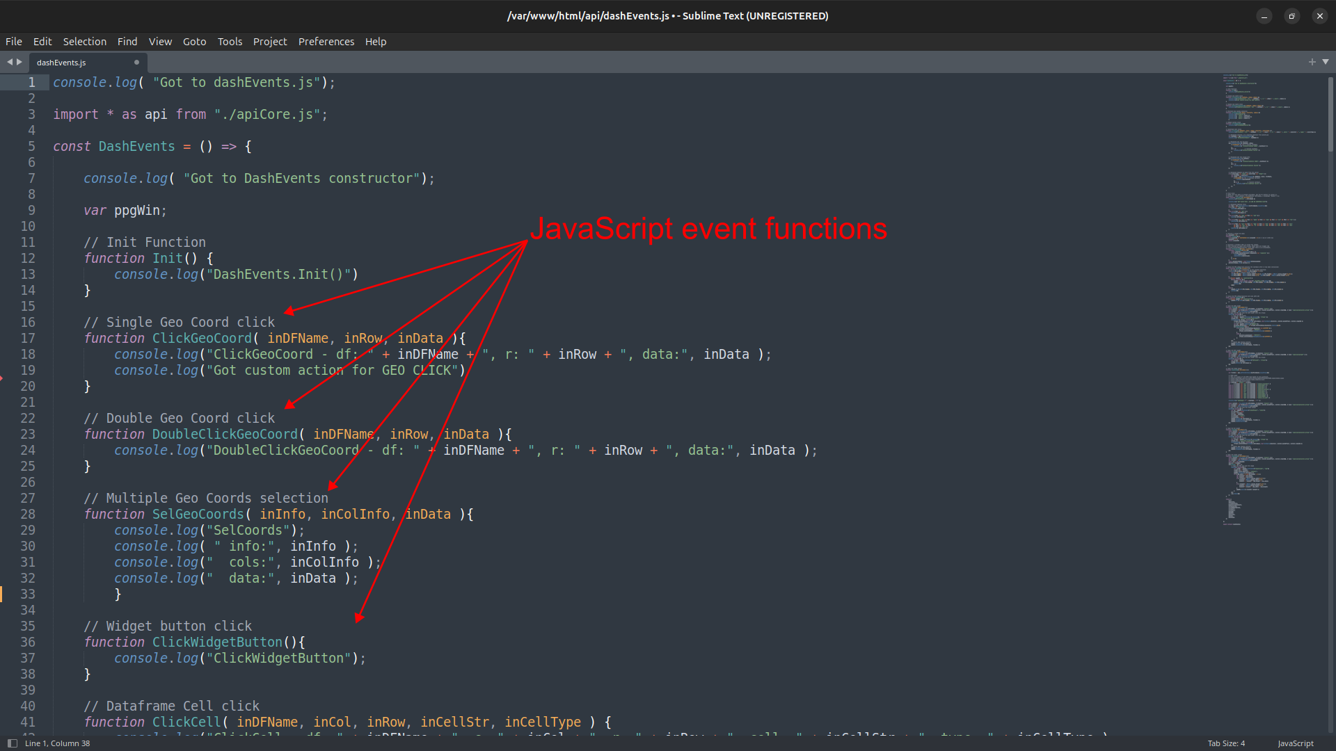 Next, open the dashEvents.js file in a text editor of your choice, such as Sublime.