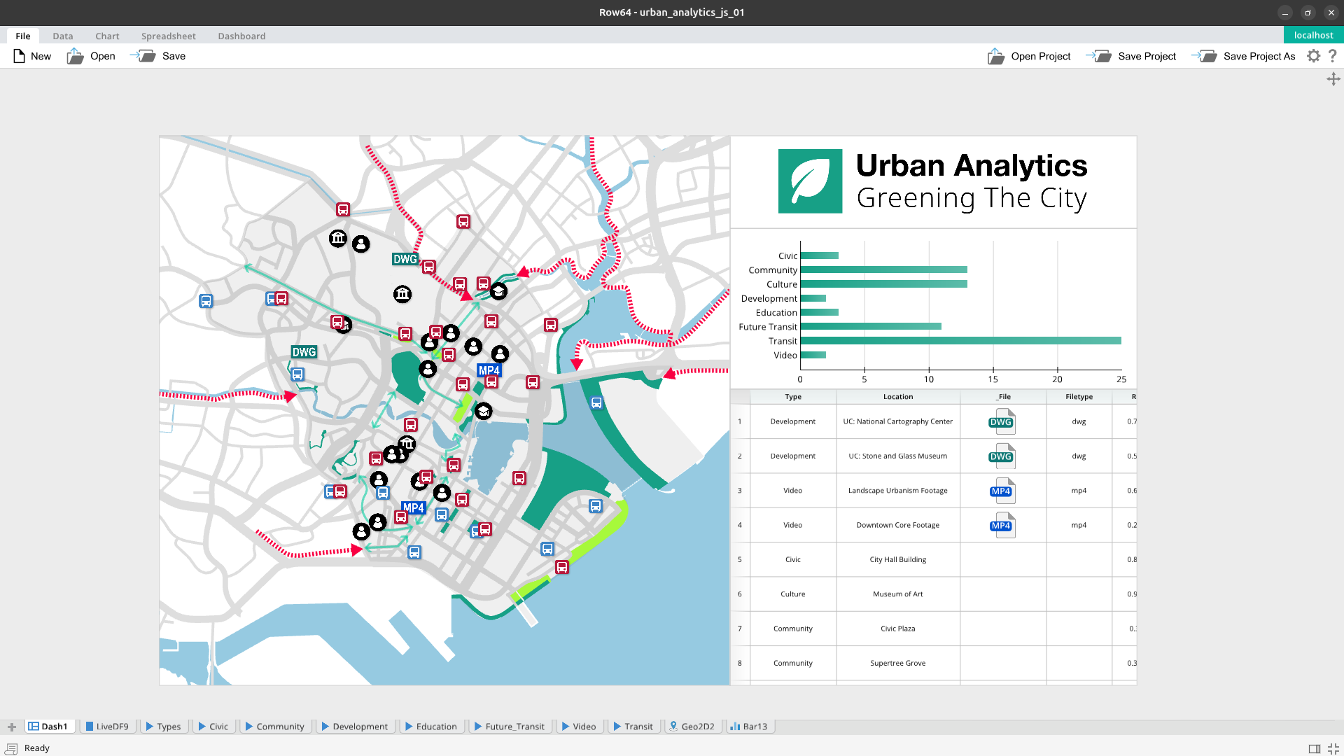 Example #3 and #4 use a separate example project that is downloadable from Row64's Google Drive. If you were following along with Urban Analytics, you can close that project.