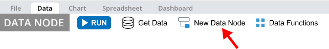 Now that we have a data preview, we can connect it to a data node to start analyzing data. In the top bar, click on New Data Node under the Data tab.