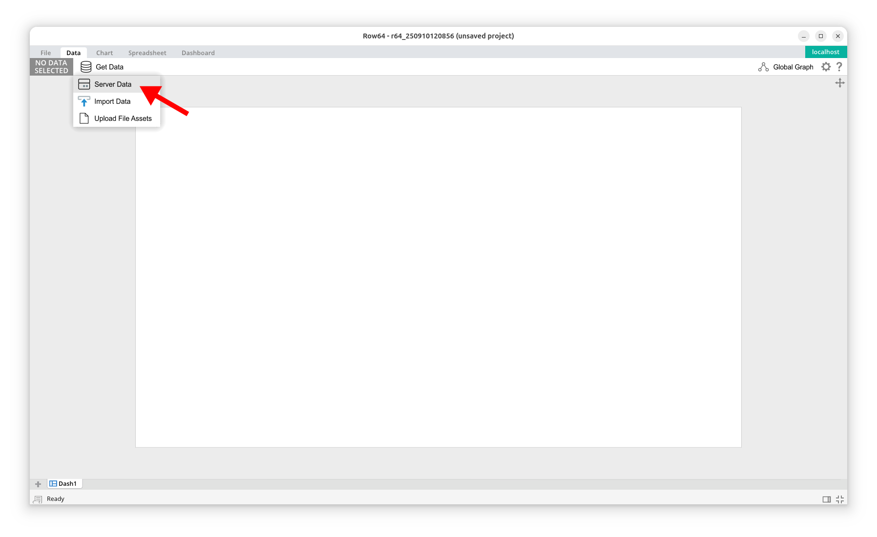 To access tables from your Server, navigate to the Data tab and click on Get Data. This will open a drop-down menu. Select the Server Data option.