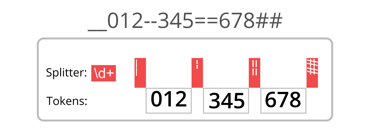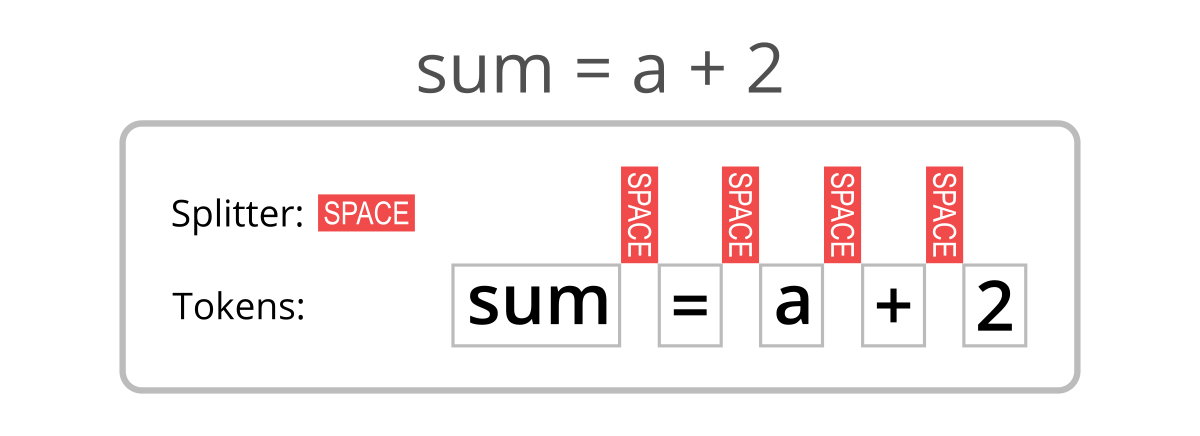 In a simple example, we tokenize the following string using a space as the delimeter: