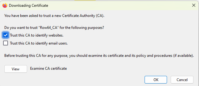 The following instructions detail how to install the ca.crt certificate on the machine(s) where you plan to access the Row64 Studio and Dashboards.
