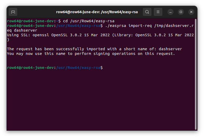 ./easyrsa import-req /tmp/dashserver.req dashserver
