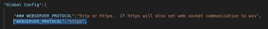 Set the "Global Config" section "WEBSERVER_PROTOCOL" field to "https".