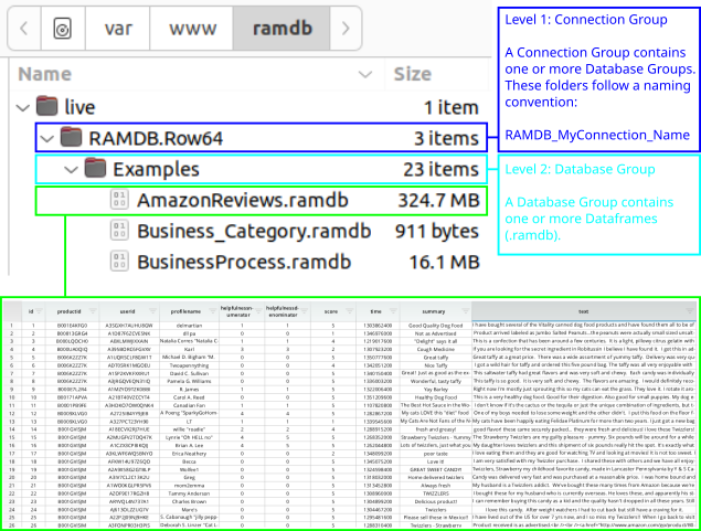 Dataframes sometimes require additional metadata, such as images, that are stored outside of the .ramdb file. In this case, you will see a sub-folder with a matching name of the .ramdb file.