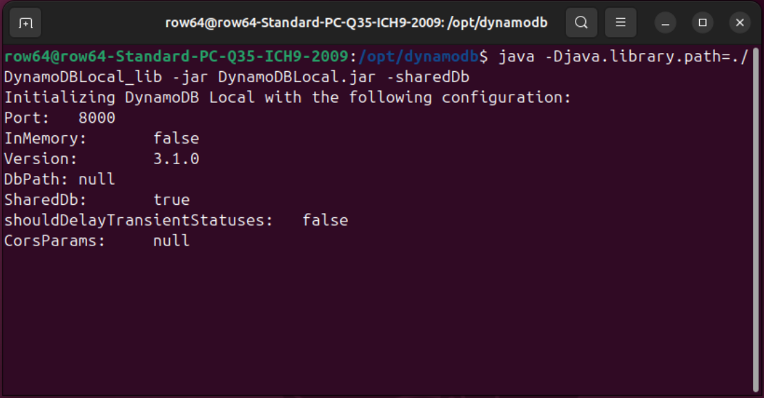 Assuming the DynamoDB files downloaded to your Downloads folder, use the following commands to create the /opt/dynamodb directory and move the files from Downloads to /opt/dynamodb: